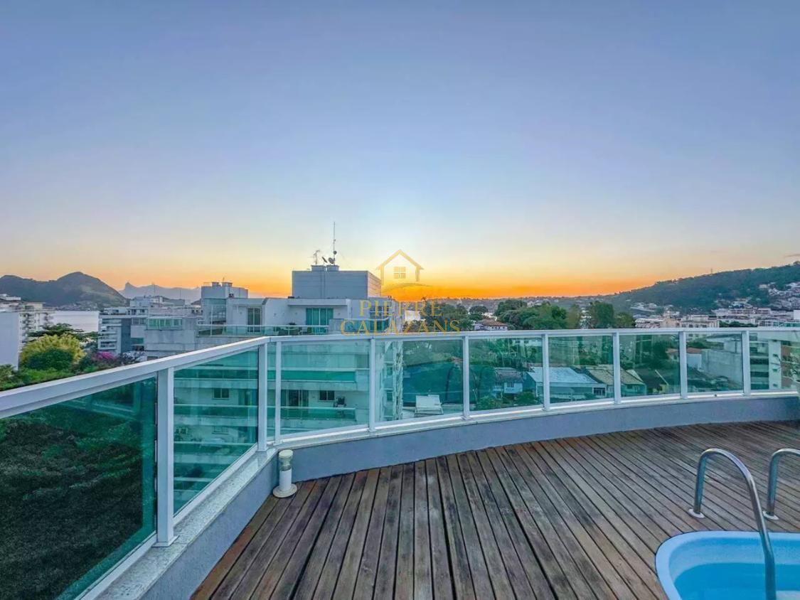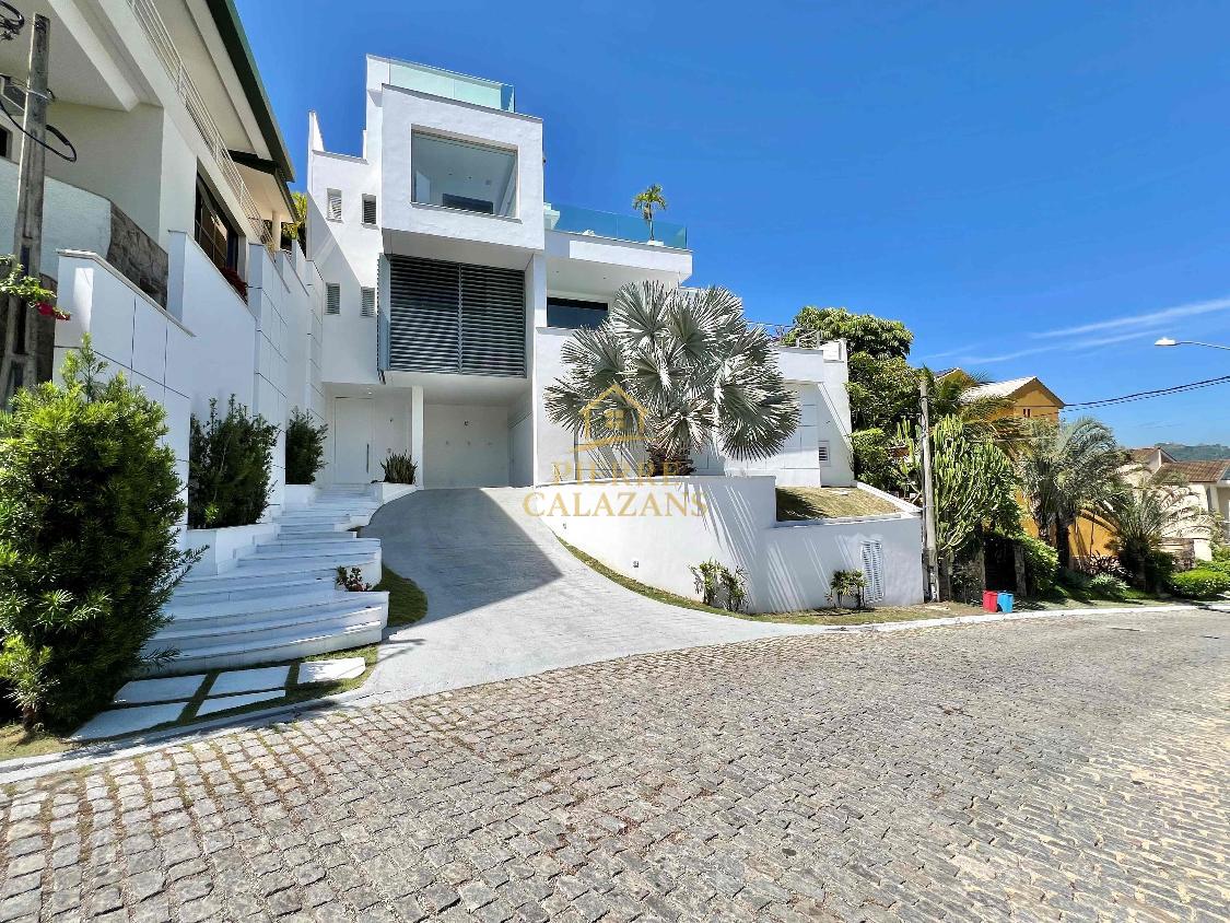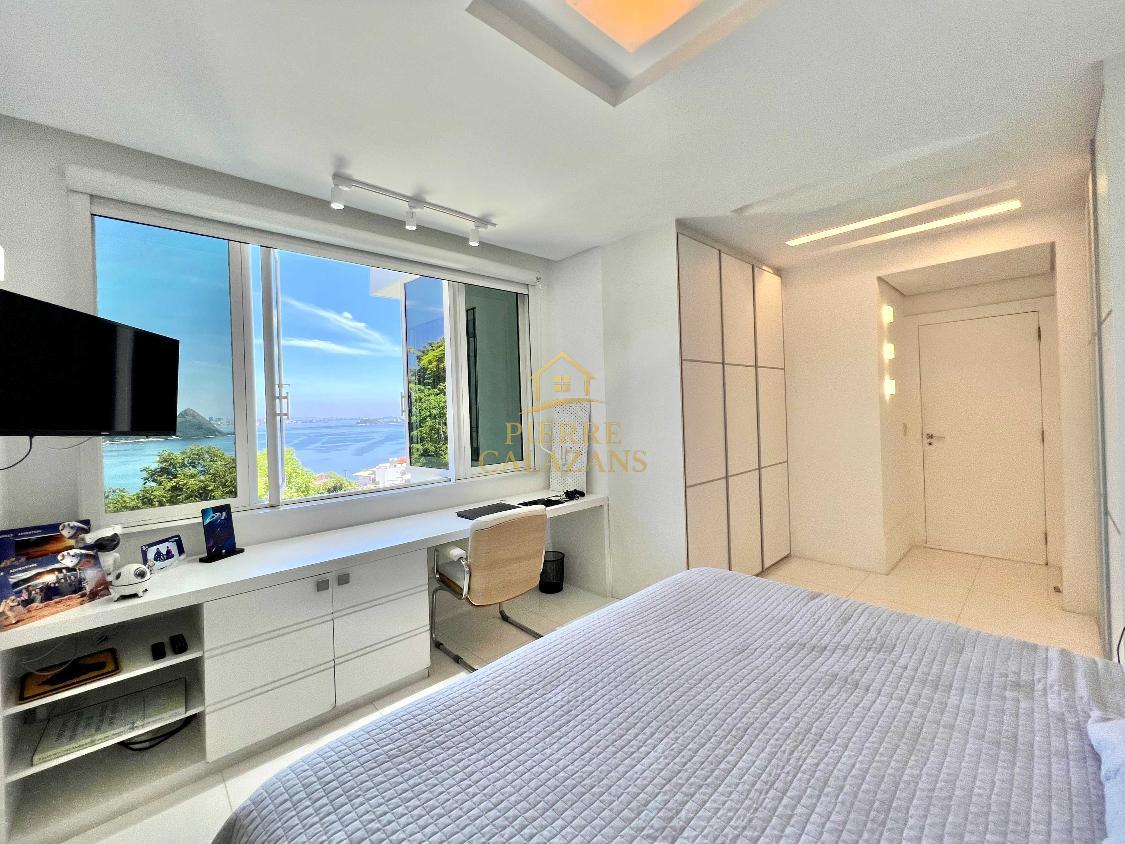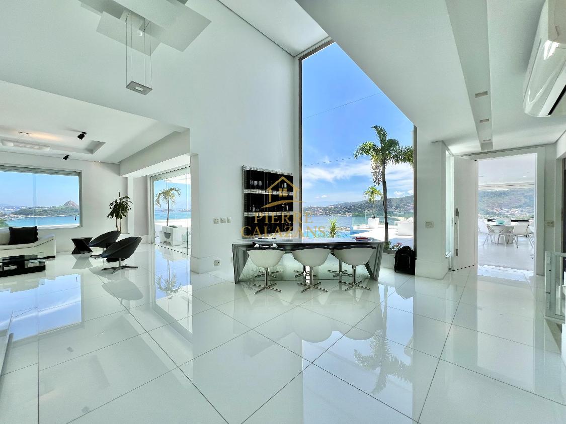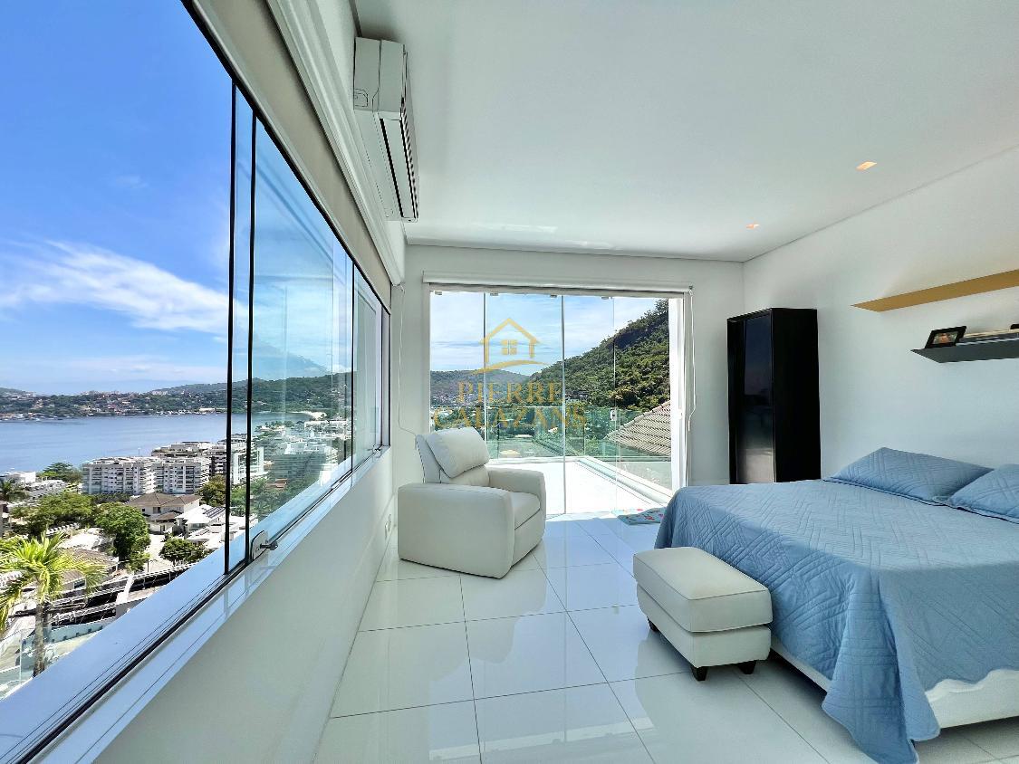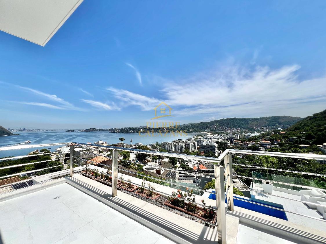 Casa deslumbrante no condomínio Aruã em Charitas! Vista eterna para o mar de todos os ambientes. As 4 suítes ficam no pavimento superior, sendo a master com varanda, closet e hidromassagem. Sala ampla em diversos ambientes como estar, jantar, tv e bar, com janelas panorâmicas, lavabo. Área de lazer com piscina com aquecimento, churrasqueira, cozinha, lavabo, sauna seca, área de descanso. Copa e cozinha, despensa, lavanderia, 2 dependências completas lado a lado. Quintal gramado no fundos com horta. Um dos pavimentos é um lounge com sala de tv , jogos e banheiro, mas com todo o recurso para ser transformado em um Loft apartado da casa. A casa possui área bunker/ blindada. Elevador hidráulico para 4 pessoas que atende todos os pavimentos. Gerador 30KVA a diesel Garagem coberta para 3 carros com portão eletrônico.